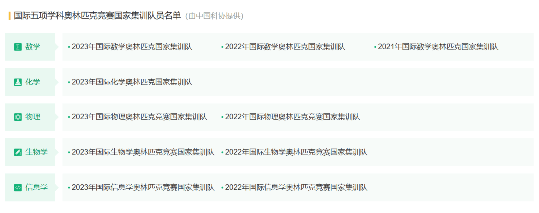 中學生學科奧林匹克競賽國家集訓隊成員。五項學科競賽是目前含金量最高的競賽,進入五大學科競賽國家集訓隊就可以獲得保送清北的資格。