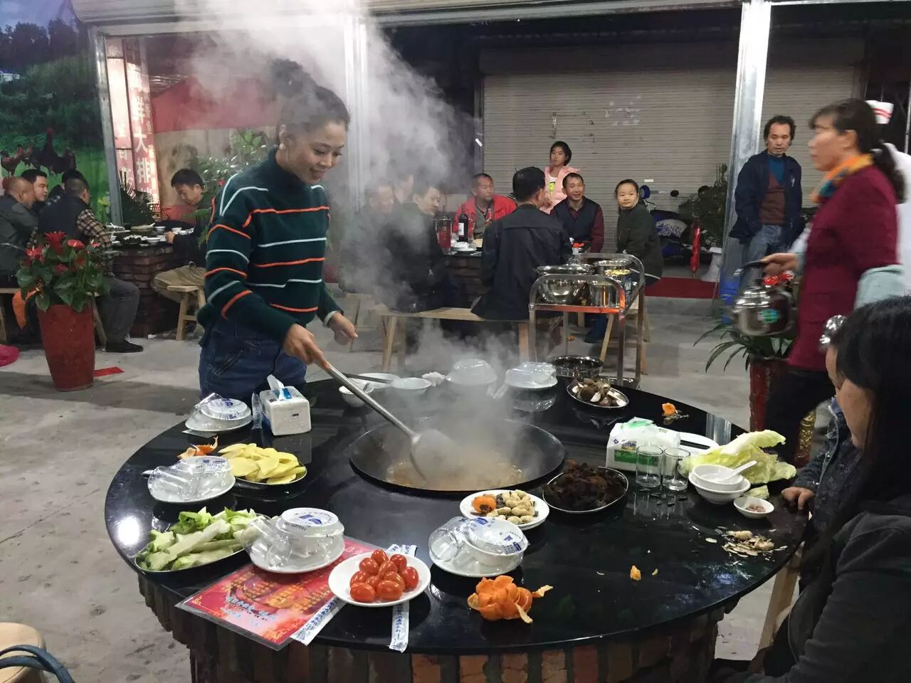 廚師介紹說,食客也可以自己動手烹飪美食,為了方便客人用餐,店里還專門定制了筷子,比普通筷子要長十來厘米,只有這種加長版的筷子才配得上大鐵鍋。炒雞先用大蒜、泡椒、姜塊進(jìn)行,根據(jù)個人口味可逐步加進(jìn)干辣椒增香增色增辣。炒得金黃、焦香后放入開水,再加雞雜、雞腰、魔芋、土豆、芋頭、絲瓜、木耳等蔬菜進(jìn)去小火慢煮30分鐘左右,就可以品嘗濃郁香醇的柴火雞了,這種經(jīng)過柴火燒制的雞肉,雞肉彈性十足,有著難以比擬的香味,十分入味。