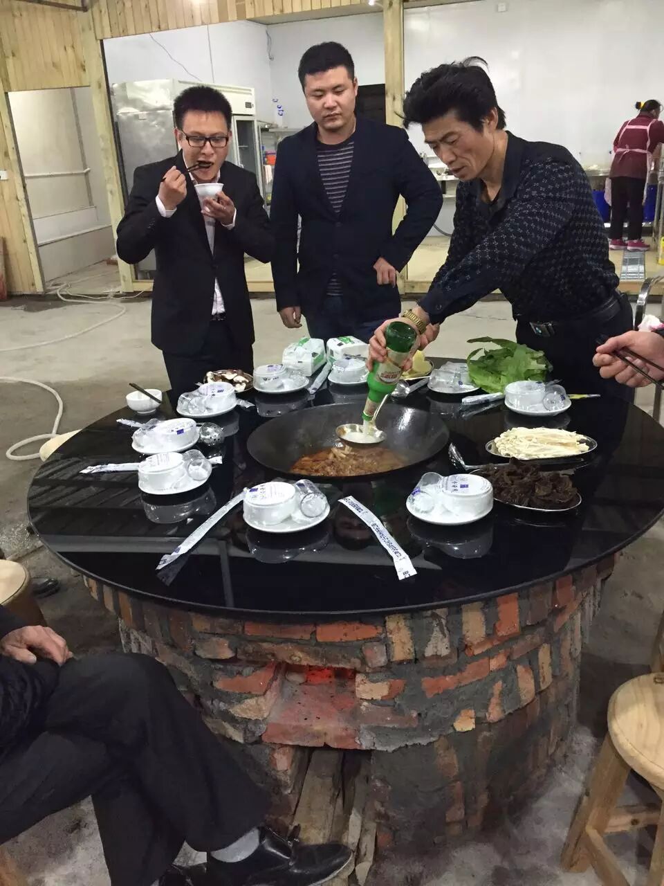 記者走進(jìn)這家店,只見有兩排磚頭砌成的土灶,旁邊堆滿了柴火,完全回歸到了兒時的感覺:很土。每張吃飯的桌子其實就是一個土灶,與灶臺相連接的是一口老鐵鍋,灶臺之下是一個柴火灶堂。灶堂可以燒柴也可以燒氣,整個灶臺密閉,現(xiàn)做過程見不到油煙。坐下來后開始點菜,點完菜廚師便開始現(xiàn)場制作,在土灶鐵鍋里放上純純的菜子油,將油煉出香味、滾燙時,將雞肉倒進(jìn)去爆炒。