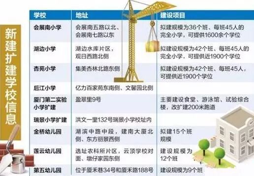 據(jù)悉,2017年新、擴(kuò)建和加快推進(jìn)的幼兒園和中小學(xué)項(xiàng)目有丙洲幼兒園、五緣實(shí)驗(yàn)學(xué)校、廈門第二實(shí)驗(yàn)小學(xué)、瑞景小學(xué),以及杏苑小學(xué)、洪前小學(xué)等。