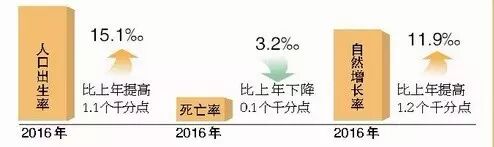 2016年人口出生率15.1‰,比上年提高1.1個(gè)千分點(diǎn);死亡率3.2‰,比上年下降0.1個(gè)千分點(diǎn);自然增長(zhǎng)率11.9‰,比上年提高1.2個(gè)千分點(diǎn)。