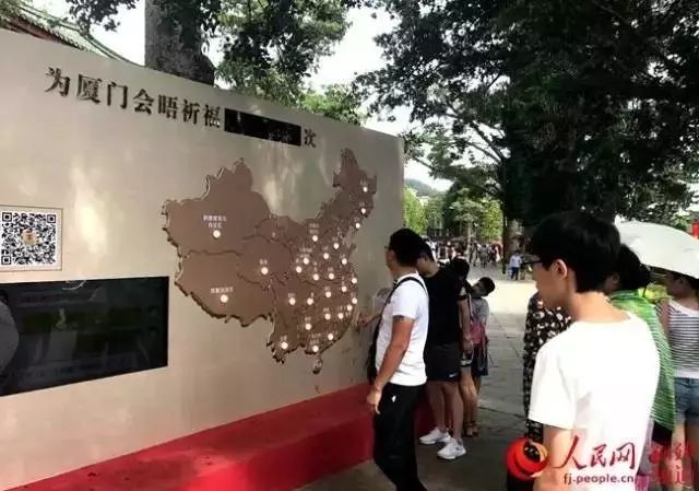 廈門市民、游客在南普陀為廈門會(huì)晤祈福,傳遞美好祝愿。