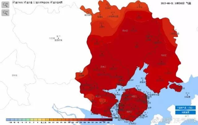 全市共有45個(gè)自動(dòng)觀測(cè)站點(diǎn)超過(guò)35℃(全市站點(diǎn)近6成)