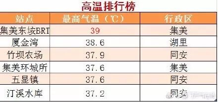 集美東垵BRT站以39℃奪得高溫榜第一名