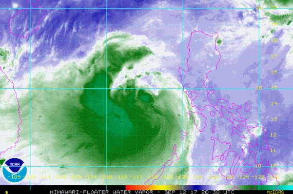 ▲1719號臺風(fēng)“杜蘇芮”動態(tài)水汽云圖(時間:9月13日222時30分至9月13日04時30分)