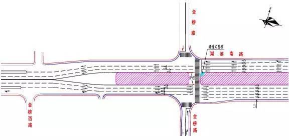 (一)機動車交通組織:湖濱南路施工路段交通組織方式維持原狀,即施工路段保持雙向6車道通行。