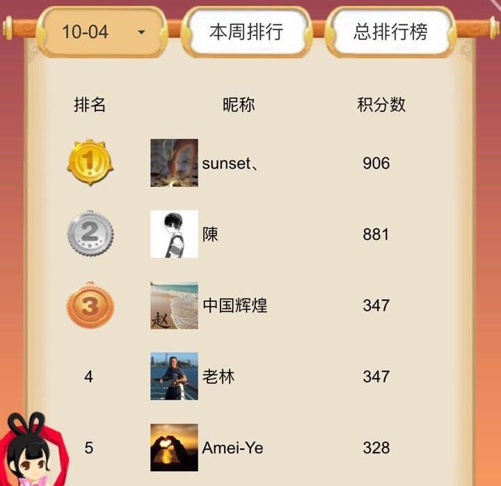 1、每天參與線上博餅都能賺取博餅積分,每日排行榜積分前5名,將獲得價(jià)值300元的“2017海峽兩岸中秋博餅狀元王中王大賽”初賽參賽證一張。