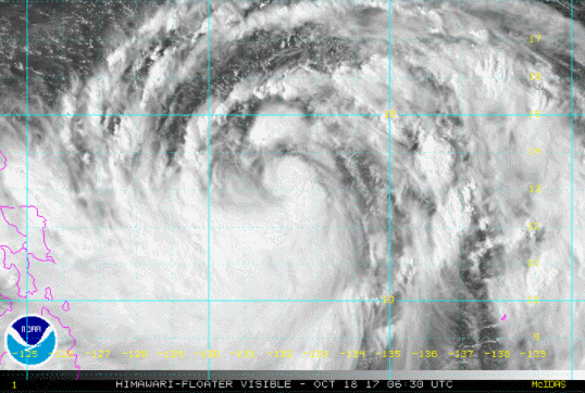 ▲今年第21號臺風(fēng)“蘭恩”生成前后的動態(tài)云圖