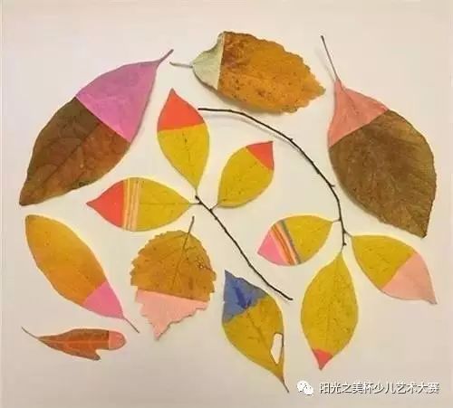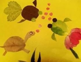 利用樹葉本身的形狀,可以做很多的繪畫創(chuàng)造。把樹葉涂白再畫畫,也是個(gè)好辦法!