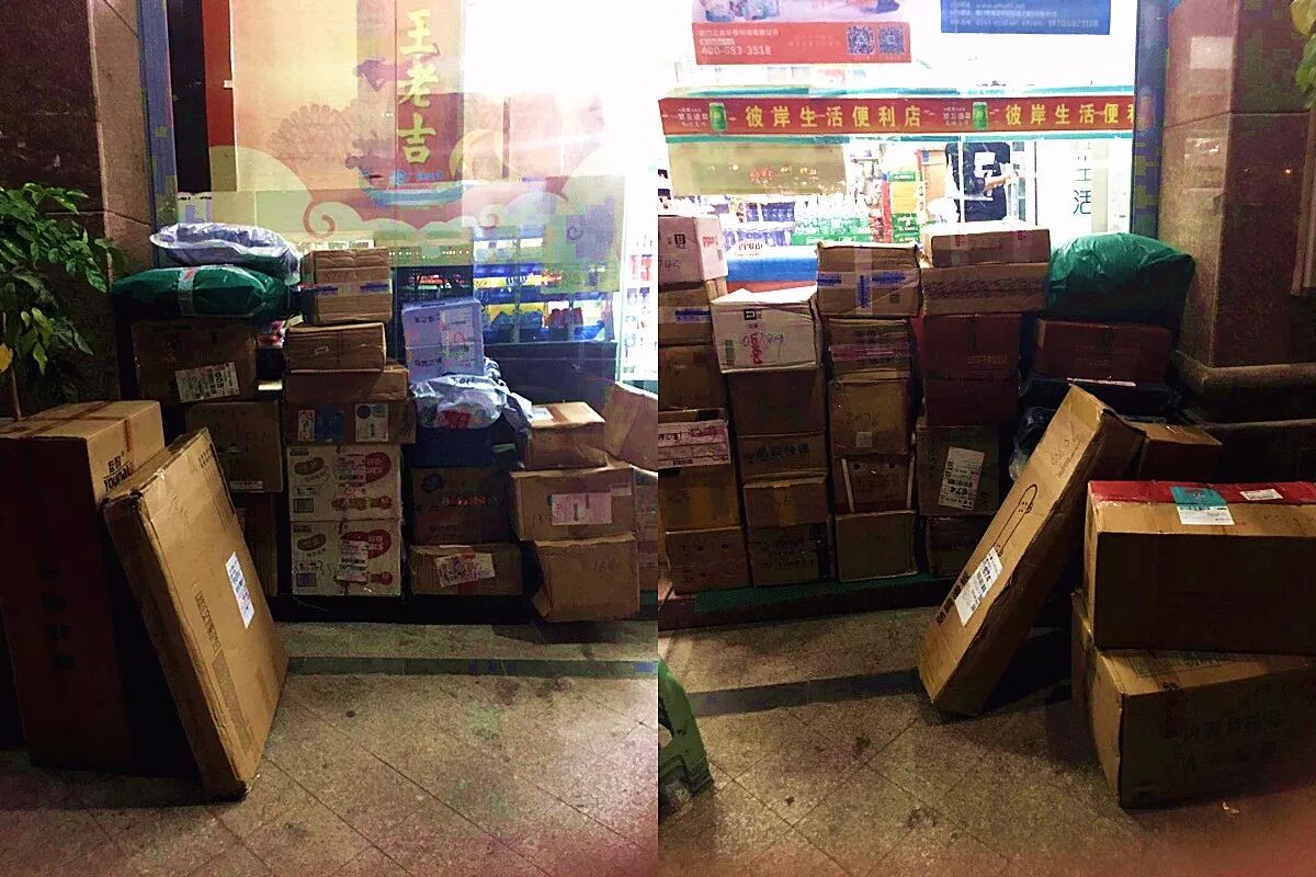 蔡塘排長(zhǎng)隊(duì)取快遞中