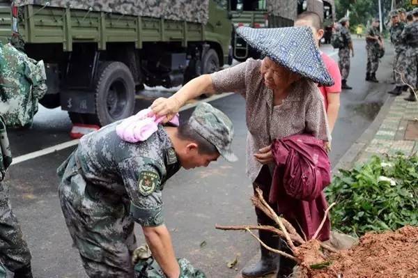 去年,超強臺風“莫蘭蒂”肆虐廈門后,各部隊緊急馳援。一位老奶奶看到解放軍戰(zhàn)士汗流浹背,走上去為他們一個個擦汗。