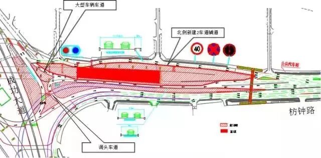 1、小型車輛通過枋鐘路北側新建2車道輔道通行,調頭及大型車輛通過枋鐘路北側保留現(xiàn)狀1車道通行