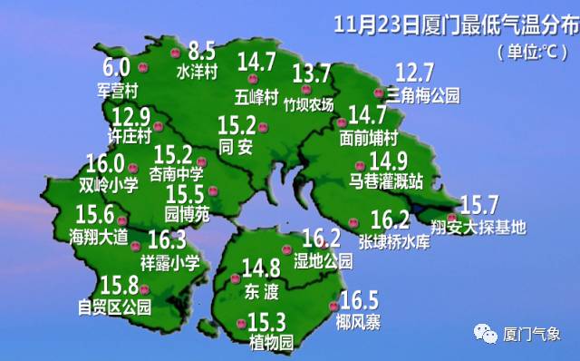 島內(nèi)外城區(qū)最低氣溫基本在15度上下