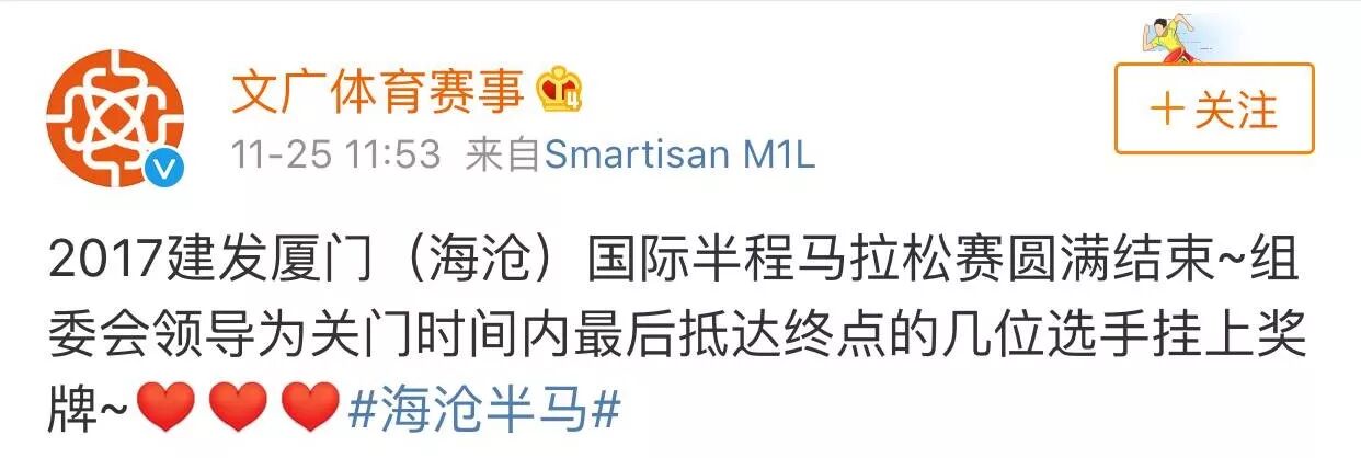 臺(tái)海網(wǎng)11月25日訊 據(jù)廈門(mén)晚報(bào)報(bào)道 暖心:運(yùn)動(dòng)員物資包里 多了件輕薄雨衣 針對(duì)雨天情況,賽事組委會(huì)提前做好了多方位準(zhǔn)備,除了給運(yùn)動(dòng)員發(fā)短信,提前預(yù)告了天氣的情況,還在運(yùn)動(dòng)員物資包里增加了輕薄的雨衣。 運(yùn)動(dòng)員完賽后 喝碗姜湯驅(qū)寒 在賽后康復(fù)方面,現(xiàn)場(chǎng)還為運(yùn)...