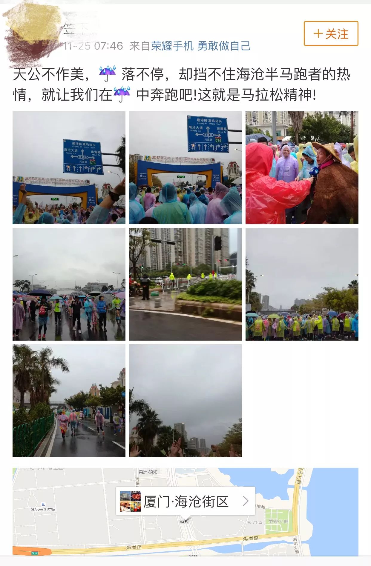 臺(tái)海網(wǎng)11月25日訊 據(jù)廈門晚報(bào)報(bào)道 暖心:運(yùn)動(dòng)員物資包里 多了件輕薄雨衣 針對(duì)雨天情況,賽事組委會(huì)提前做好了多方位準(zhǔn)備,除了給運(yùn)動(dòng)員發(fā)短信,提前預(yù)告了天氣的情況,還在運(yùn)動(dòng)員物資包里增加了輕薄的雨衣。 運(yùn)動(dòng)員完賽后 喝碗姜湯驅(qū)寒 在賽后康復(fù)方面,現(xiàn)場(chǎng)還為運(yùn)...