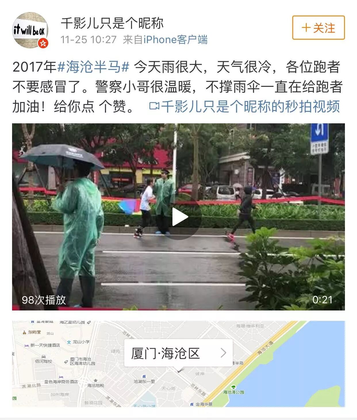 臺海網(wǎng)11月25日訊 據(jù)廈門晚報報道 暖心:運動員物資包里 多了件輕薄雨衣 針對雨天情況,賽事組委會提前做好了多方位準備,除了給運動員發(fā)短信,提前預告了天氣的情況,還在運動員物資包里增加了輕薄的雨衣。 運動員完賽后 喝碗姜湯驅(qū)寒 在賽后康復方面,現(xiàn)場還為運...