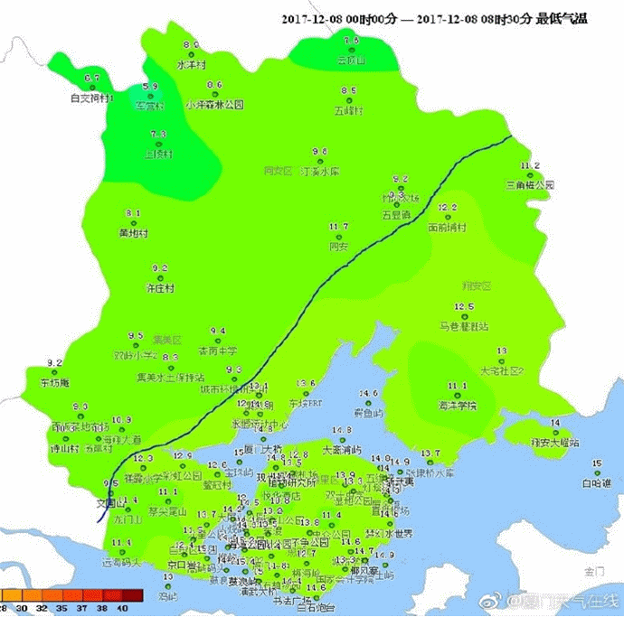 臺海網(wǎng)12月8日訊 據(jù)海西晨報報道 昨天,廈門仍然在冷空氣的影響下,氣溫比較低迷,島內(nèi)午間最高氣溫不到20℃,凌晨島內(nèi)外城區(qū)基本在11℃-12℃,而海滄集美西部和同安北部地區(qū)都低于10℃,山區(qū)更是只有3℃多。隨著大雪節(jié)氣的到來,西伯利亞地區(qū)的冷空氣將更加頻繁地影響我國,華南地區(qū)也會受到波及。就廈門來看,未來一周會有多股冷空氣影響,分別在8日-9日、11日-12日...