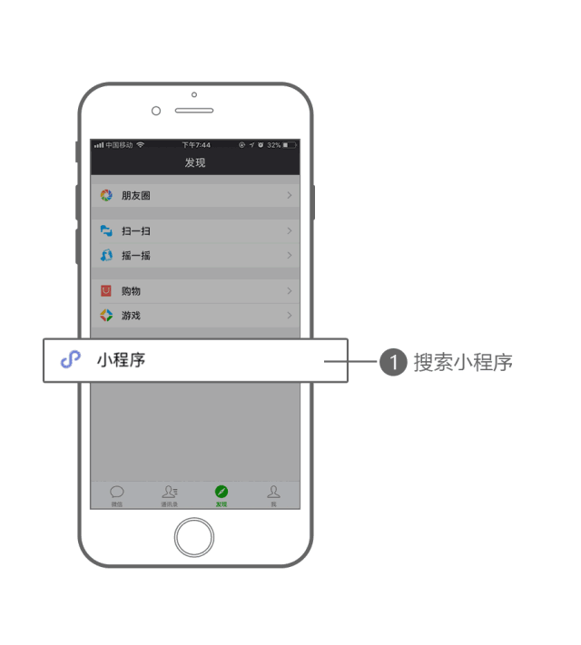 微信中找到“發(fā)現(xiàn)”-“小程序”