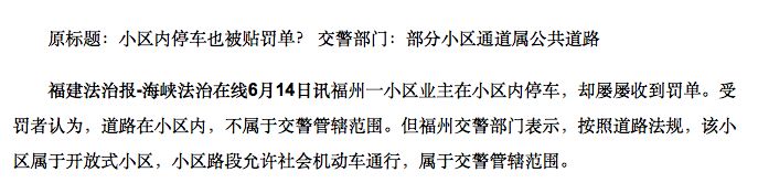 阿欣停車的地方是在小區(qū)范圍內(nèi),還是道路范圍內(nèi),成為該案的爭議焦點。在阿欣看來,她的車輛是停在小區(qū)內(nèi),小區(qū)雖然是半開放式的,但對于小區(qū)的界定并非以開放或者半開放進(jìn)行,而且半開放式的小區(qū)不能否認(rèn)物權(quán)法授予公民享有的權(quán)利。