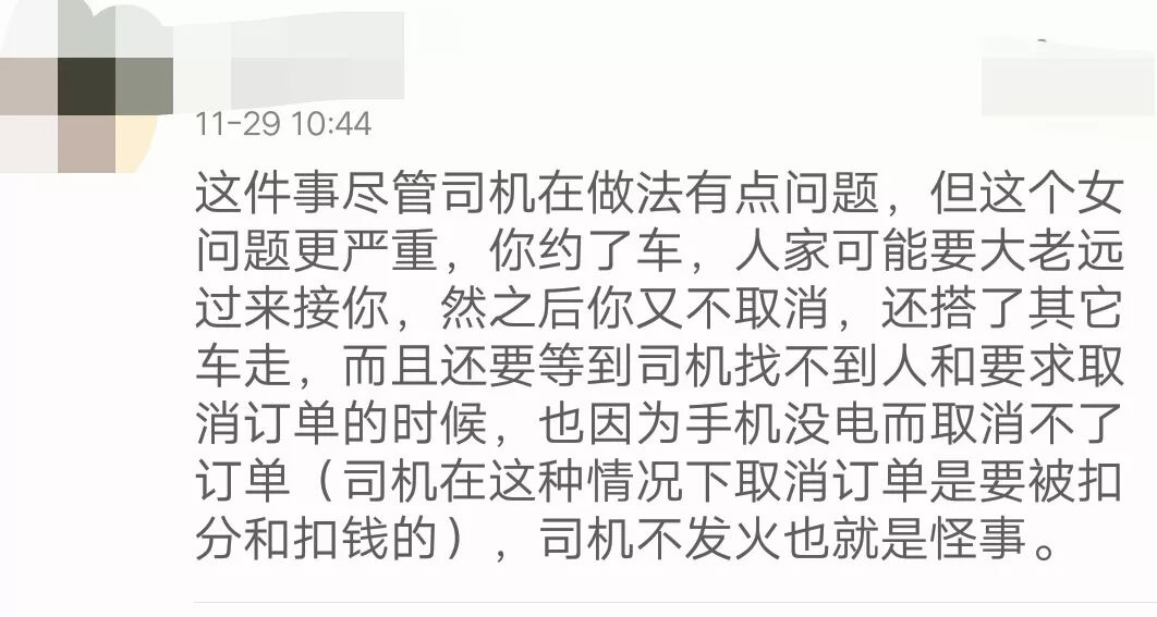 一般出租車上也有充電器,我打算上車充上電后取消訂單,沒想到車前腳走,滴滴(出租車)后腳就到,因為還沒來得急取消訂單,那個司機一開口就破口大罵,讓我趕緊取消訂單,我還想解釋幾句,對方就把電話掛了……還沒充上電,司機就打電話謾罵,這下手機斷電了!