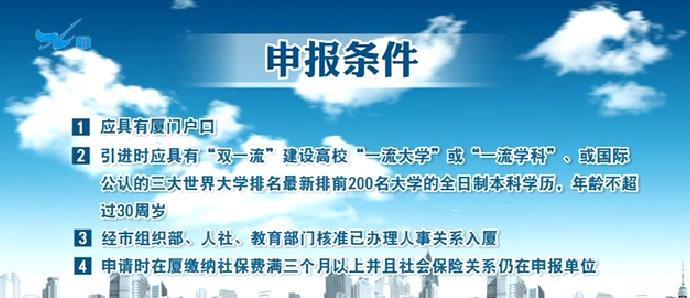 在碩士研究生和博士研究生可申領(lǐng)廈門市新引進(jìn)人才生活補(bǔ)貼的基礎(chǔ)上,即日起,符合條件的本科生也可以申請(qǐng)新引進(jìn)人才生活補(bǔ)貼,每人2萬元,補(bǔ)貼將一次性發(fā)放到本人賬戶。申報(bào)對(duì)象要求為:2018年11月26日起,新引進(jìn)到廈門市轄區(qū)范圍內(nèi)企業(yè)、駐廈省部屬和市屬、區(qū)屬事業(yè)單位工作的在職在崗且符合條件的人才。申報(bào)條件為:具有廈門戶口,引進(jìn)時(shí)應(yīng)具有“雙一流”建設(shè)高校“一流大學(xué)”或“一流學(xué)科”、或國際公認(rèn)的三大世界大學(xué)排名最新排前200名大學(xué)的全日制本科學(xué)歷,年齡不超過30周歲;經(jīng)市組織部、人社、教育部門核準(zhǔn)已辦理人事關(guān)系入廈;申請(qǐng)時(shí)在廈繳納社保費(fèi)滿三個(gè)月以上并且社會(huì)保險(xiǎn)關(guān)系仍在申報(bào)單位。申請(qǐng)實(shí)行全程網(wǎng)辦,申報(bào)單位可通過市人社局網(wǎng)上辦事大廳進(jìn)行網(wǎng)絡(luò)系統(tǒng)申報(bào)。