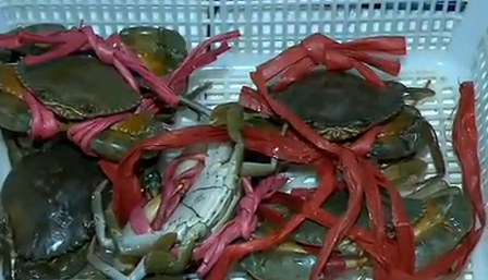 在位于夏商國(guó)際水產(chǎn)品交易中心的北堤一號(hào)海鮮城,執(zhí)法人員也對(duì)螃蟹綁大繩的情況進(jìn)行了檢查,結(jié)果發(fā)現(xiàn),有兩只螃蟹捆綁繩的重量,占到了螃蟹重量的百分之十一。