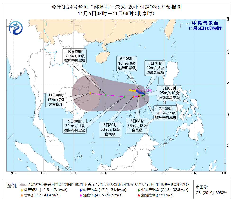 臺海網(wǎng)11月6日訊 據(jù)廈門日報報道 南海熱帶低壓于昨天20時加強(qiáng)為今年第24號臺風(fēng)“娜基莉”(熱帶風(fēng)暴級)(英文名稱: Nakri名字來源:柬埔寨;名字意義:一種花),今天10時其中心位于海南省三沙市(西沙永興島)東南方約570公里的南海東南部海面上,就是北緯13.5度、東經(jīng)116. 4度,中心附近最大風(fēng)力有8級(18米/秒),中心最低氣壓為998百帕,七級風(fēng)圈半徑150~250公里。