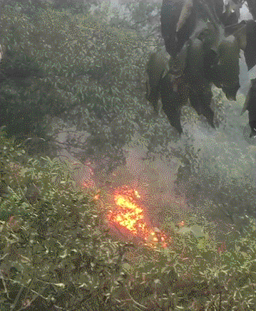 【16:10】下午4時許,記者抵達(dá)山腳處,現(xiàn)場可見明火浮現(xiàn),據(jù)村民說火勢從山下向上,因?yàn)轱L(fēng)大,山體這一側(cè)不時有明火浮現(xiàn),山體籠罩在濃煙當(dāng)中,現(xiàn)場充斥著嗆鼻的氣味,灰燼飄浮空中,在山腳,現(xiàn)場能聽到劈劈啪啪的聲音。