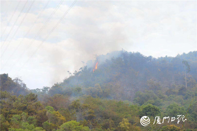 【15:41】本報記者在虎路尾山體一側(cè)偶遇消防車,由于火勢較大,集美消防正在上山增援,預(yù)防火勢蔓延。