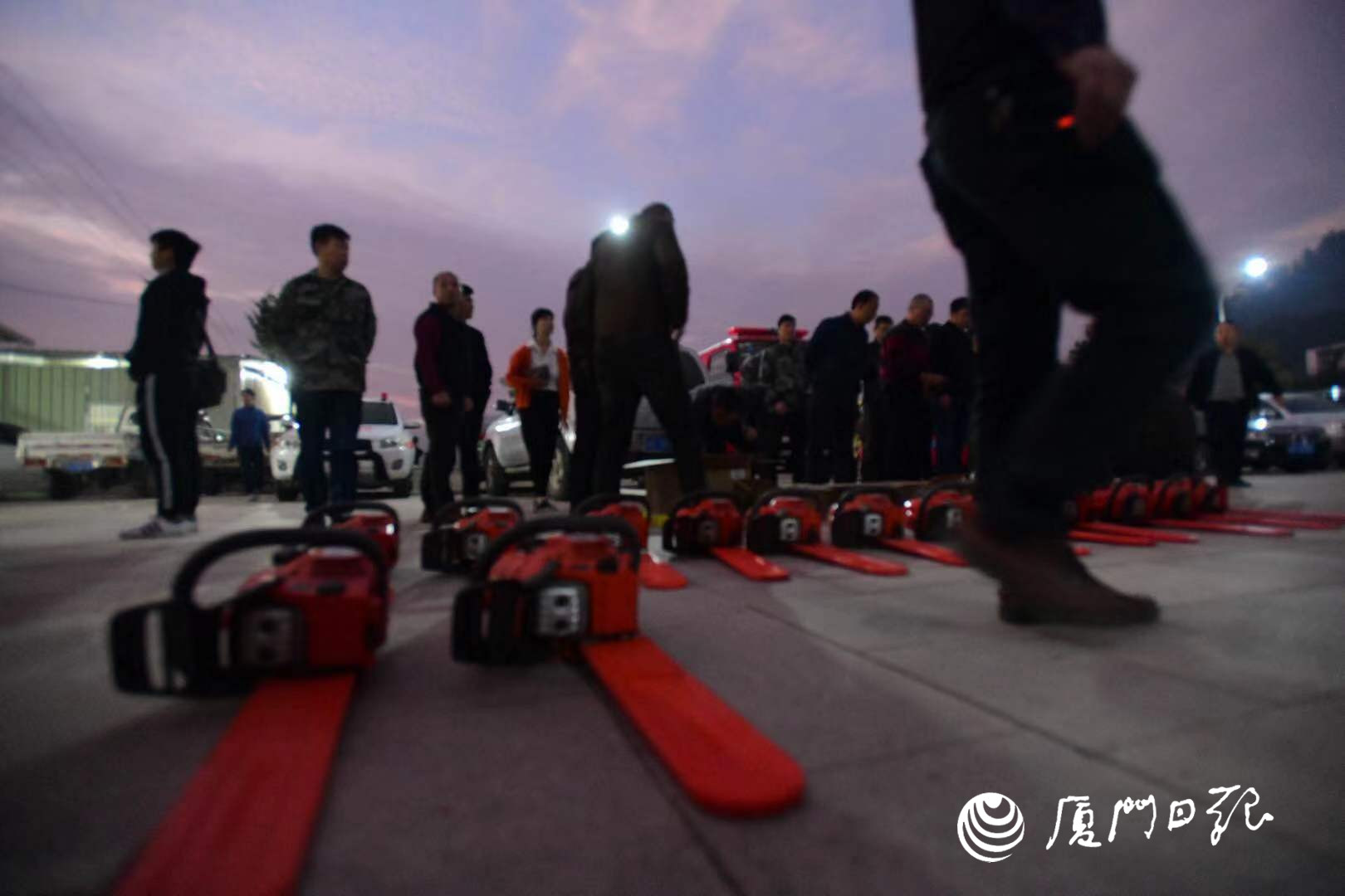臺海網(wǎng)12月4日訊 據(jù)廈門日報報道 下午5時30分,天色漸漸陰暗,現(xiàn)場正在組織夜間救援隊(duì),分配照明燈、電鋸、鐵鍬等救援裝備?,F(xiàn)場照明燈不斷閃爍,電鋸聲此起彼伏,救援隊(duì)員整裝待發(fā)。5分鐘后,救援隊(duì)有紀(jì)律、分批次地向山上進(jìn)發(fā)。