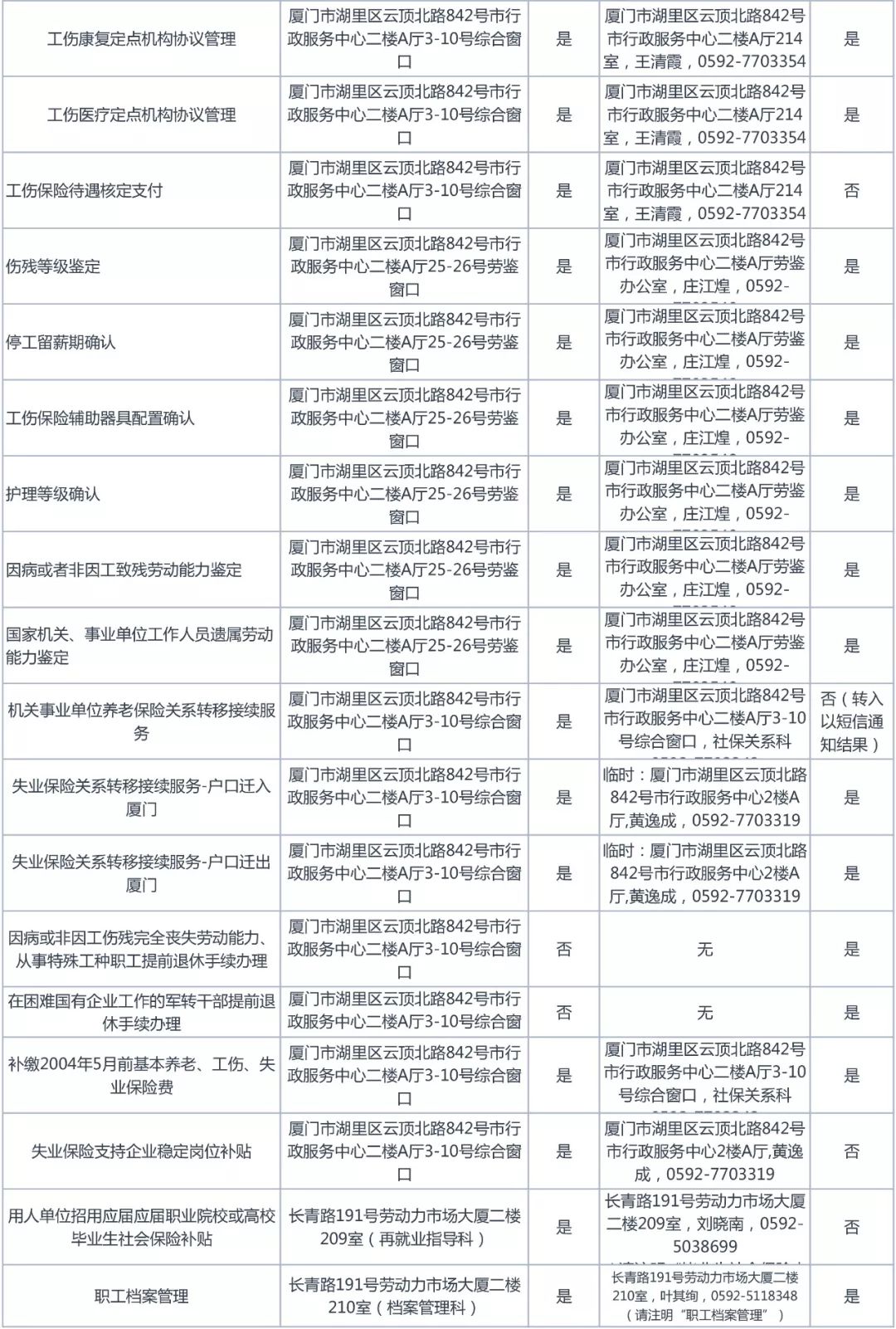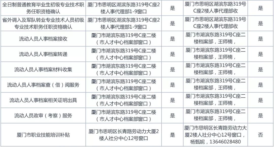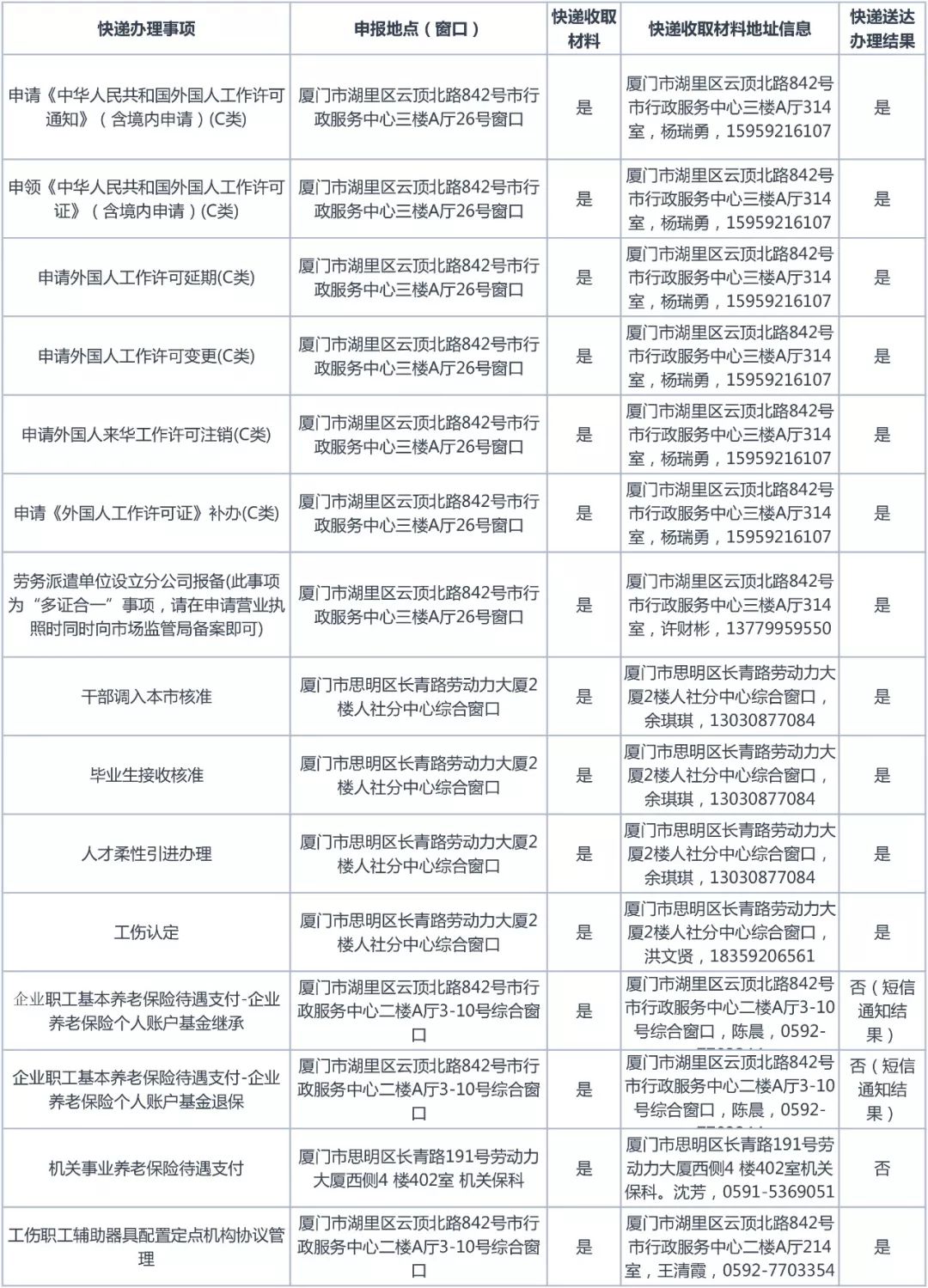 市人社局可快遞材料辦理事項清單