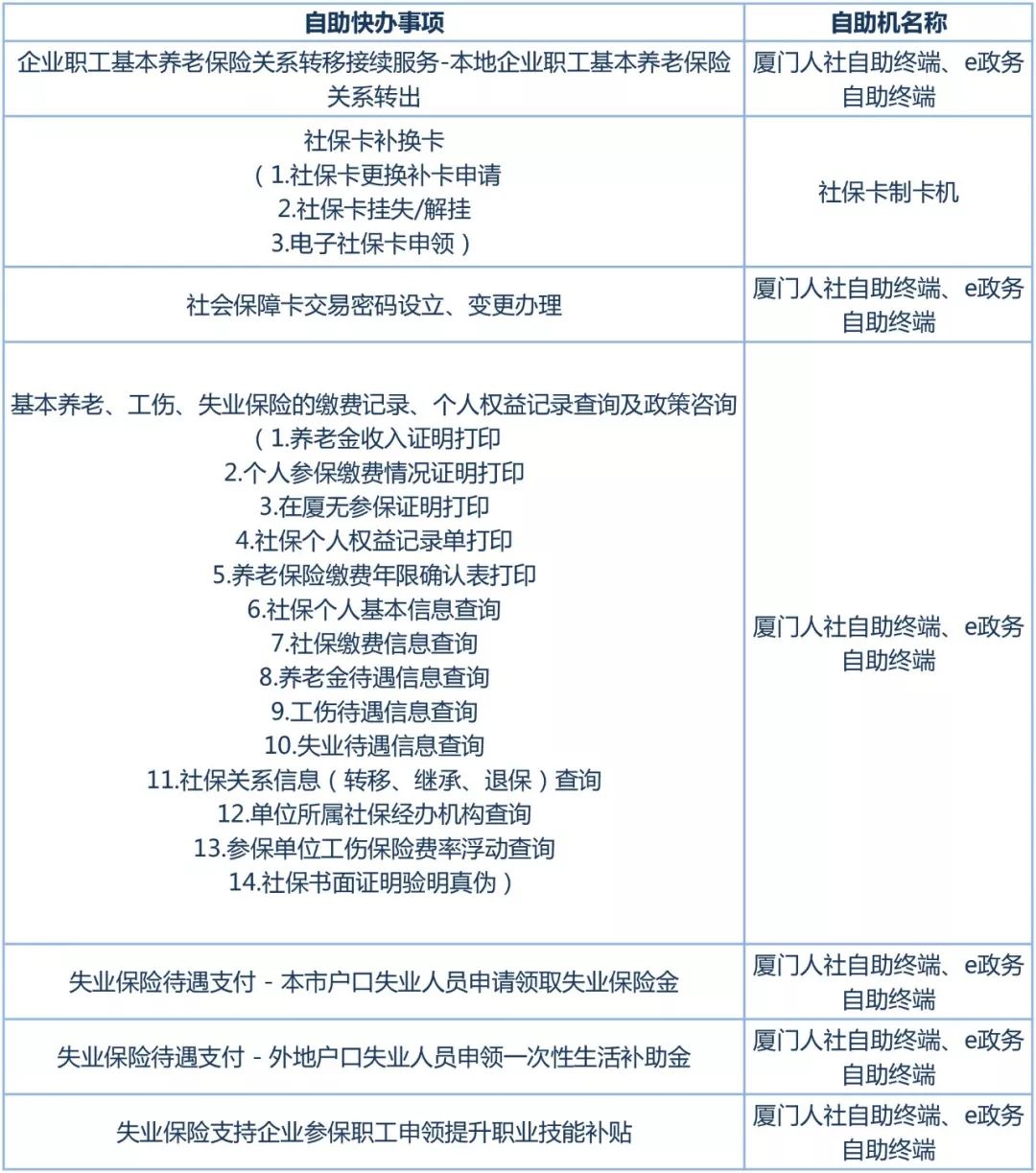 市人社局“自助快辦”事項清單