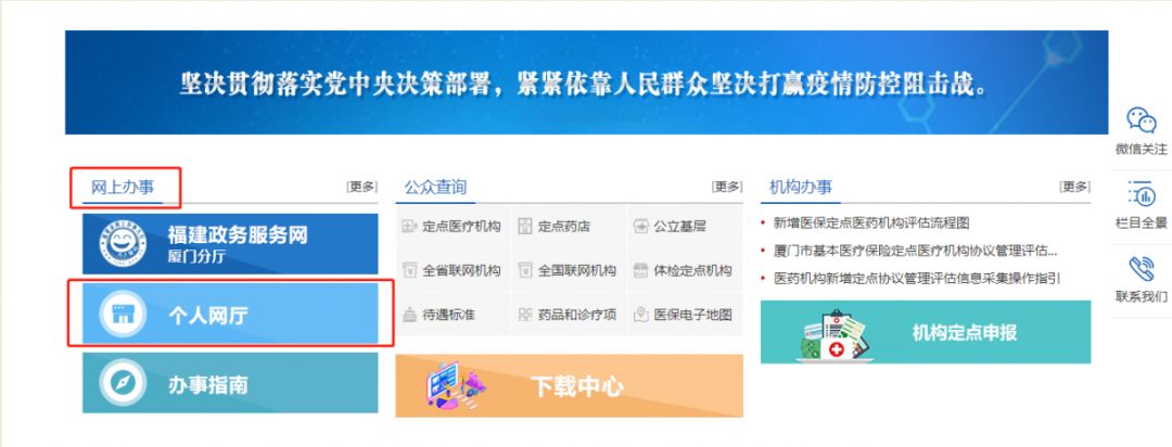 登錄廈門市醫(yī)療保障局官方網(wǎng)站 http://ylbz.xm.gov.cn/,點(diǎn)擊“個(gè)人網(wǎng)廳”。