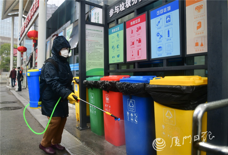 【09:40】上午9時許,廈門第一碼頭公交場站內(nèi),多名保潔人員已準(zhǔn)備就緒。他們兵分多路做好公交場站內(nèi)的消殺工作。