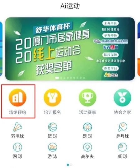 ② 首頁點(diǎn)擊“場館預(yù)約”,進(jìn)入開放場館列表界面。