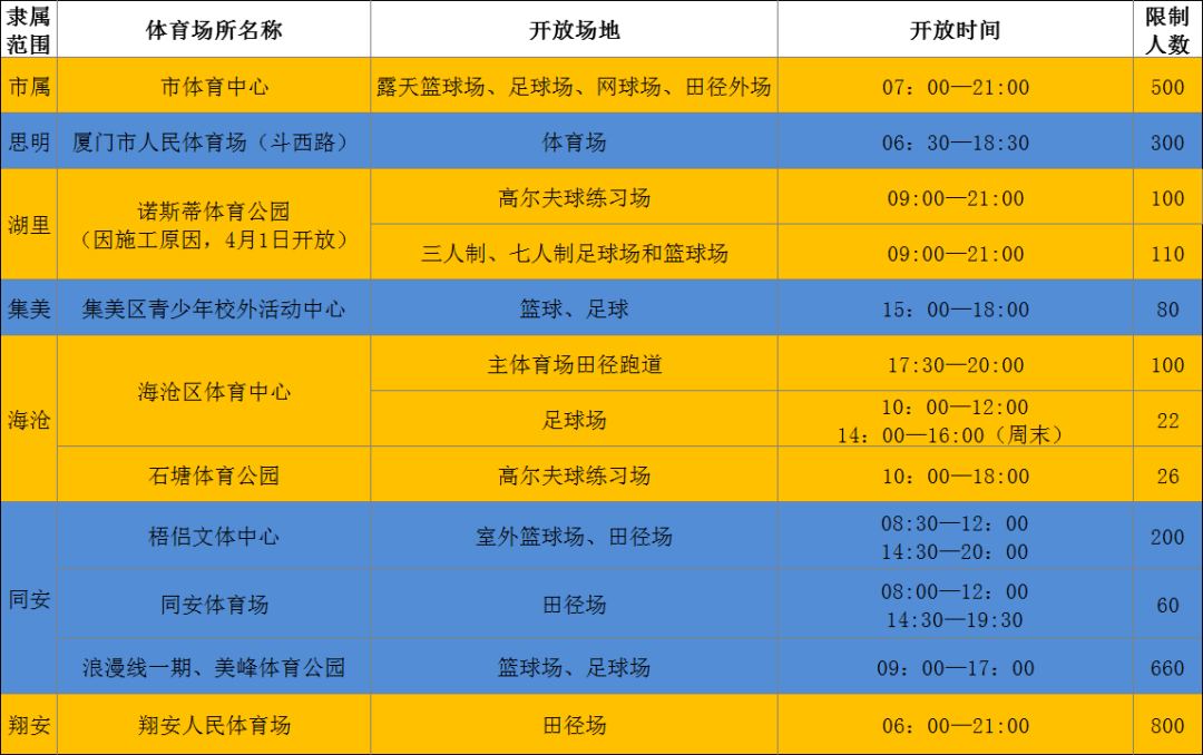 第一批恢復(fù)開放的體育運(yùn)動(dòng)場所名單