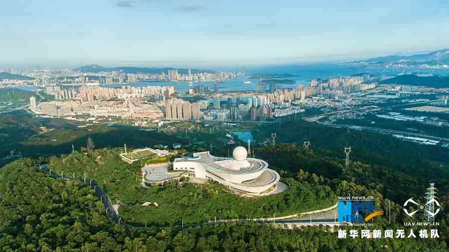 從空中俯瞰“天語(yǔ)舟”,它像中國(guó)古代的司南,又好似一艘自天外駕云渡水而來(lái)的航船。這里擁有360度的全景視角,除了是天氣雷達(dá)陣地之外,它還是廈門(mén)氣象科技園、臺(tái)風(fēng)科技館和紅十字防災(zāi)減災(zāi)體驗(yàn)館所在地。(劉默涵 陳亞沙)
