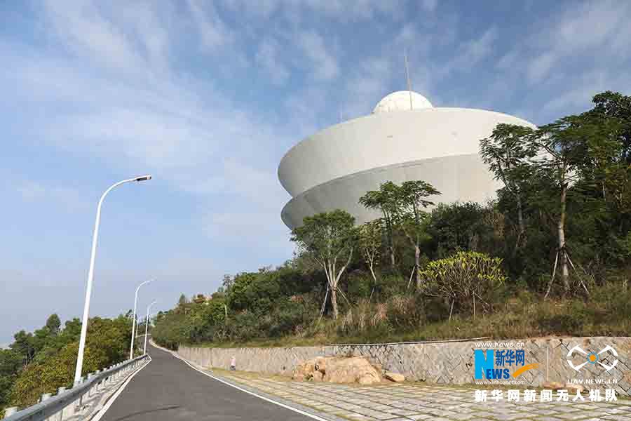 從空中俯瞰“天語(yǔ)舟”,它像中國(guó)古代的司南,又好似一艘自天外駕云渡水而來(lái)的航船。新華網(wǎng)發(fā)(陳亞沙 攝)