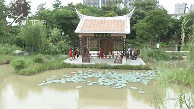 作為一座以南音為主題的公園,園內(nèi)入口景墻、休閑亭、文化館等多處景觀設計都體現(xiàn)著南音元素。