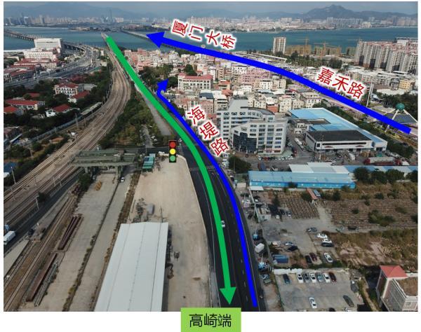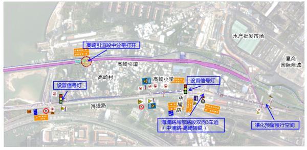 屆時,封閉高崎引道與廈門大橋西半幅,同時在高崎寨設(shè)置開口連接線村莊道路;海堤路在海堤公園和高崎小學(xué)站增設(shè)信號燈。