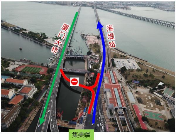 屆時,廈門大橋集美端所有上橋匝道均封閉,調(diào)整地面道路(集美學(xué)村-鰲園路段)交通組織流線。