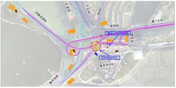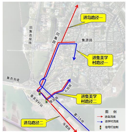 ● 在同集路-天馬路、同集路-集美大道節(jié)點繞行集美大橋;