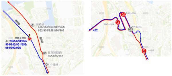 施工期間海堤路東側(cè)高崎小學(xué)站往南遷移約150m,方便432路上行方向左轉(zhuǎn)中埔路,并減停高崎道口站。