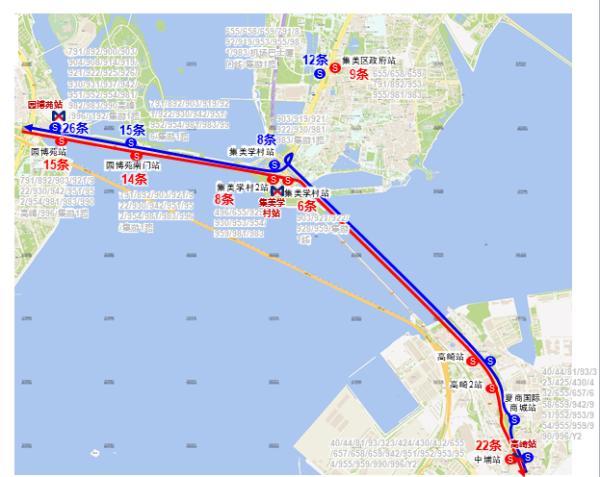廈門大橋進島方向島內(nèi)端??扛咂檎炯案咂?站的公交線路一共10條,施工期間兩處公交站點需移至海堤路上高崎小學(xué)站,并臨時更名為高崎站,方便進出島乘客識別票價跨段點。