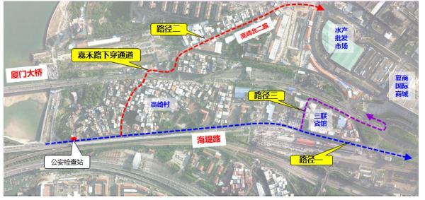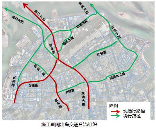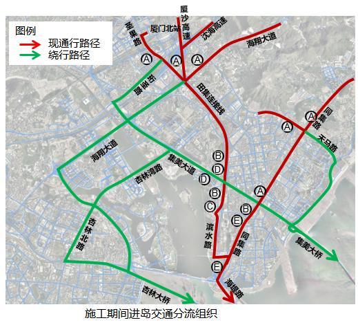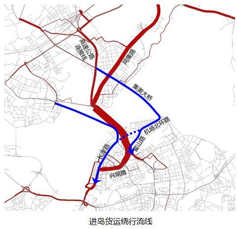 繞行路徑:引導(dǎo)貨運車輛通過杏林大橋、集美大橋進島。