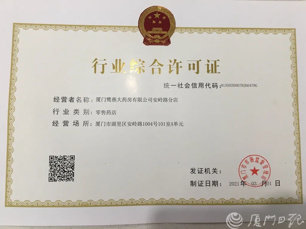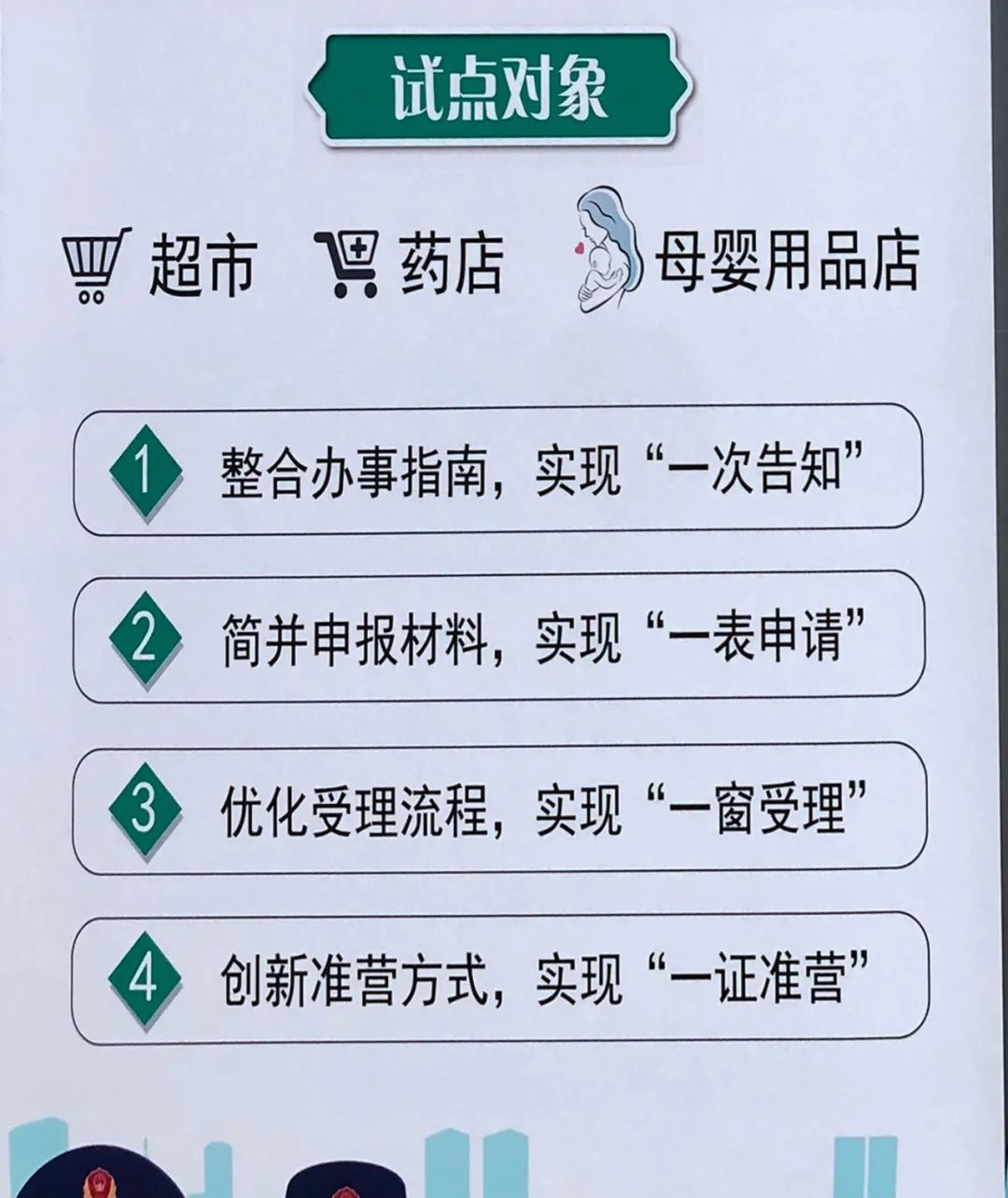 本次試點(diǎn)的3個行業(yè)中,開辦藥店過去需申請辦理《藥品零售企業(yè)經(jīng)營許可證》《第三類醫(yī)療器械經(jīng)營許可證》《第二類醫(yī)療器械經(jīng)營備案憑證》《食品經(jīng)營許可證》等4張?jiān)S可證;超市、母嬰用品店需辦理《食品經(jīng)營許可證》《第二類醫(yī)療器械經(jīng)營備案憑證》2張?jiān)S可證,改革后僅需辦理《行業(yè)綜合許可證》,實(shí)現(xiàn)“一證準(zhǔn)營”。