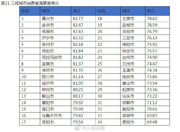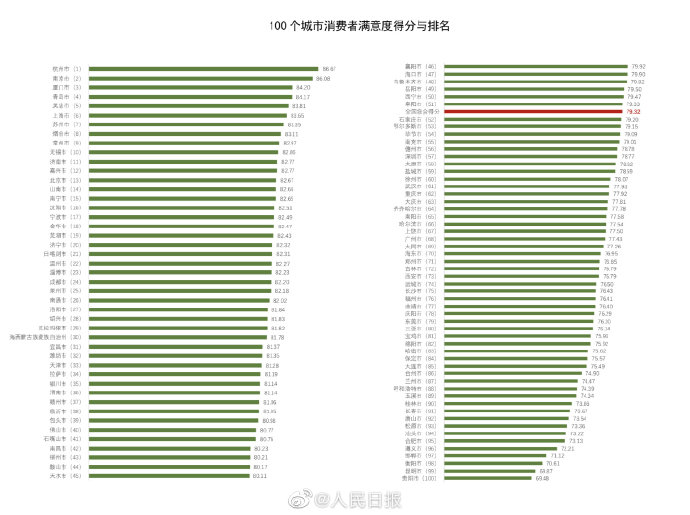 中國消費(fèi)者協(xié)會13日發(fā)布,根據(jù)2020年消費(fèi)者滿意度調(diào)查結(jié)果,排名前10位的城市依次為杭州、南京、廈門、青島、吳忠、上海、蘇州、煙臺、常州、無錫;排名后10位的城市依次為長春、唐山、松原、汕頭、合肥、遵義、邯鄲、衡陽、昆明、貴陽。