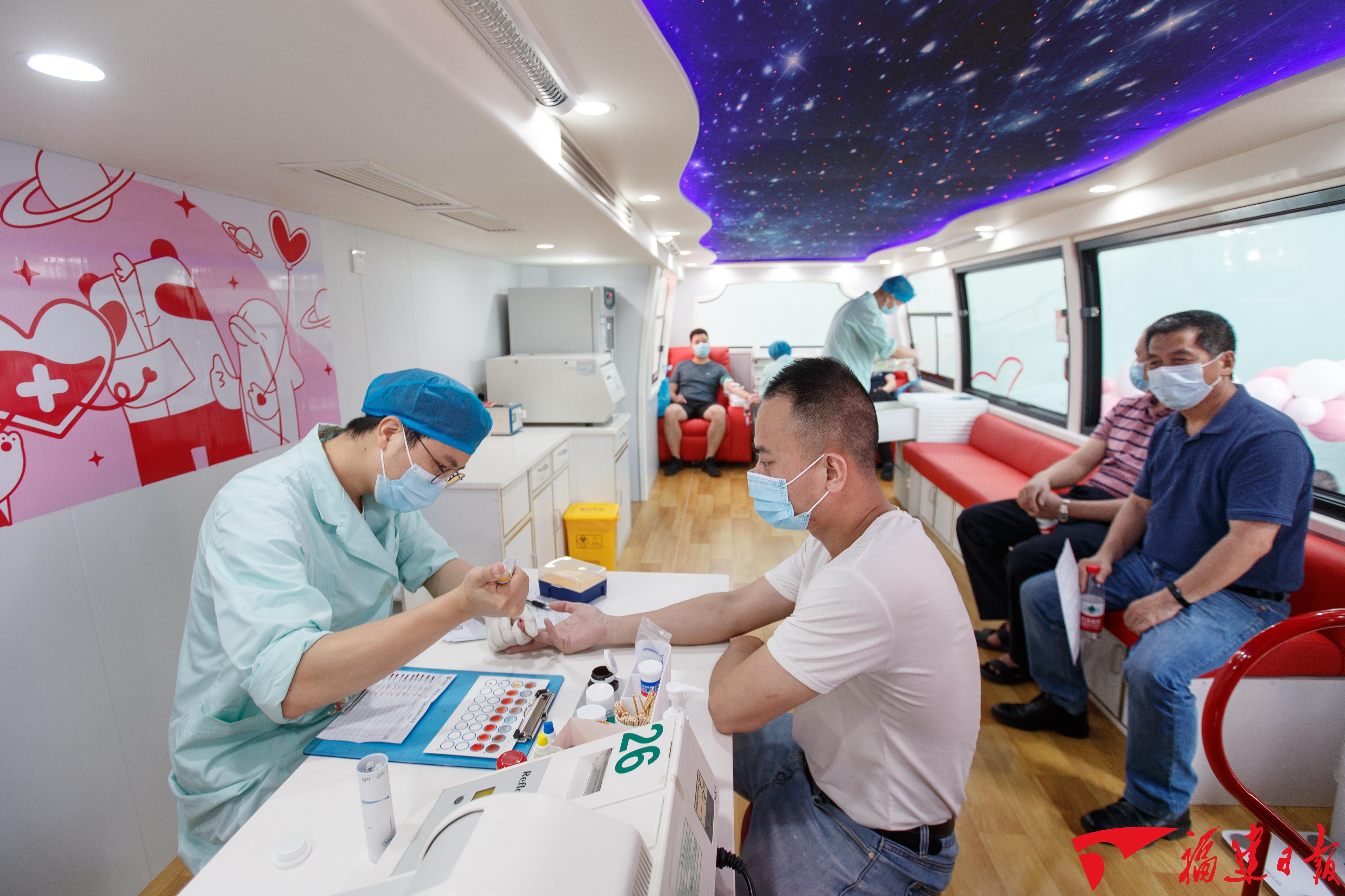 愛(ài)心采血屋里的“宏和號(hào)”愛(ài)心獻(xiàn)血車(chē)車(chē)體