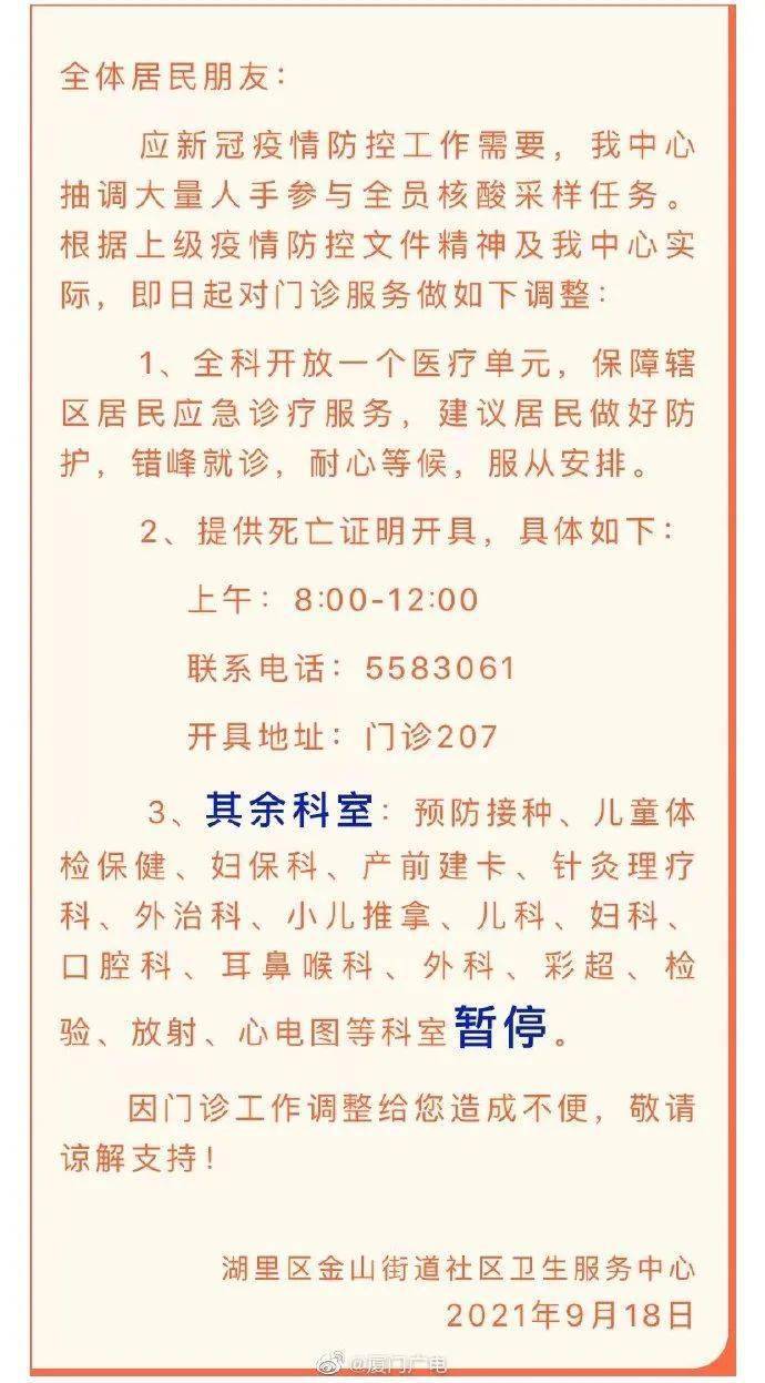 臺海網(wǎng)9月19日訊 據(jù)廈門日報報道 根據(jù)當前我市疫情防控實際情況,連日來市民政局已陸續(xù)暫停辦理部分公共服務(wù)。 市行政服務(wù)中心已于9月17日起暫停對外開放,市民政局進駐該中心的全部審批服務(wù)事項均可通過“網(wǎng)上辦”“郵寄辦”等“不見面審批”方式辦理。申請人可登錄福建省網(wǎng)上辦事大廳(https://zwfw.fujian.gov.cn/)或廈門市民政局官網(wǎng)(http://mzj.xm.gov.cn/)辦...