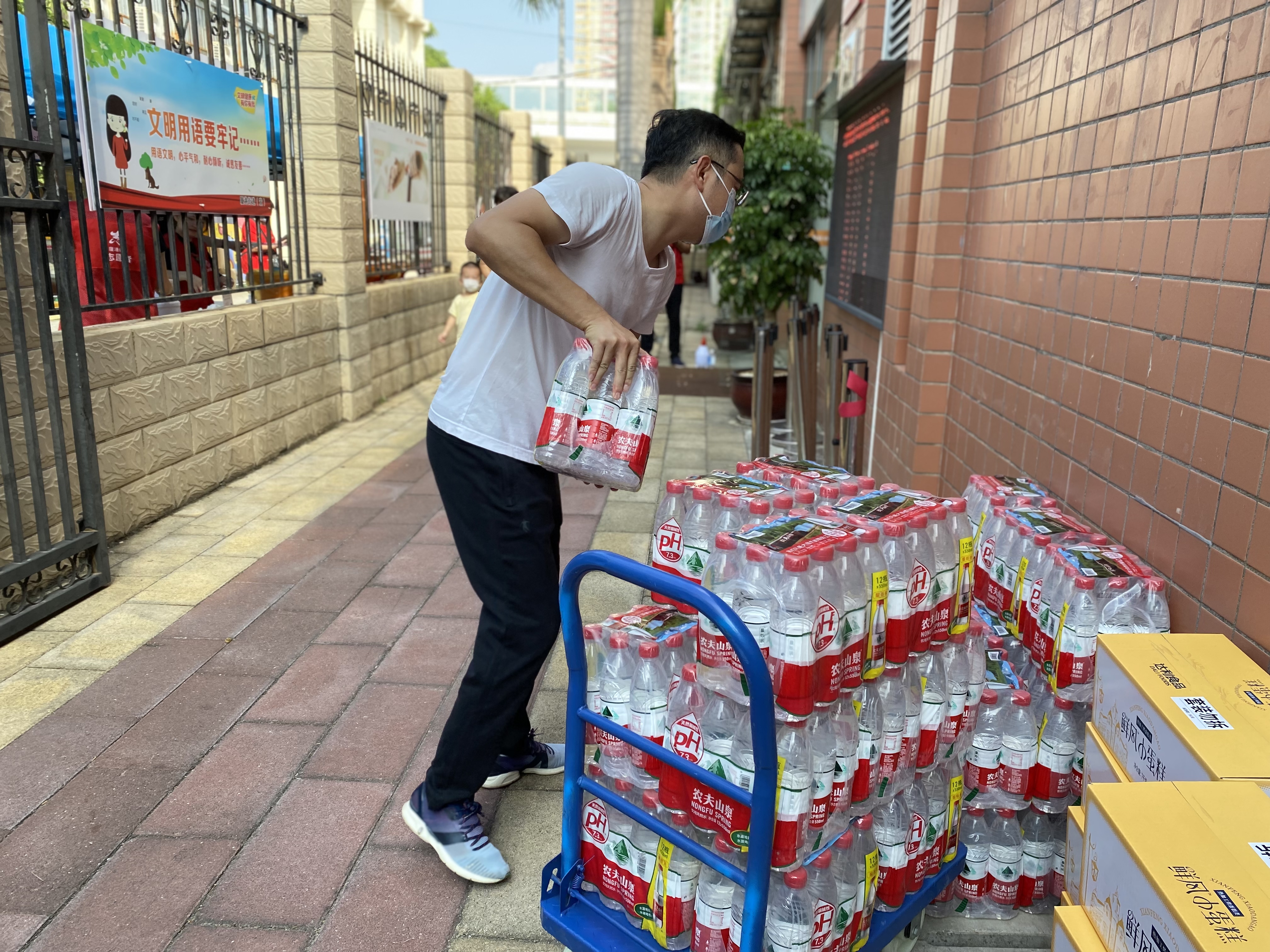 樓下年輕的陳姓小伙攙扶著樓上92歲高齡的大爺來(lái)做核酸;世茂物業(yè)、愛心商家為志愿者、醫(yī)護(hù)人員送上茶水、飲料;不留名的居民送來(lái)防疫物資……